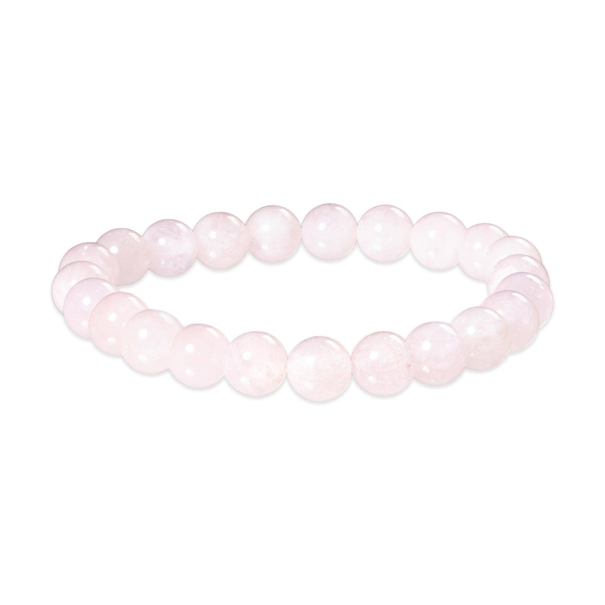Blush is made from rose quartz, a pale, milky pink stone with a gentle translucence. The colour is understated rather than sugary, closer to misted light than bright pink. Subtle internal clouding gives each bead depth and softness, keeping the finish calm and natural.