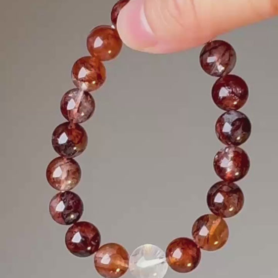 Natural stone characteristics: Rutile needle density, orientation, and colour vary dramatically between beads. Some show golden threads, others copper-red. The clear quartz may contain minor internal fractures (rainbow inclusions) visible under direct light. Your bracelet's specific rutile patterns are unrepeatable.